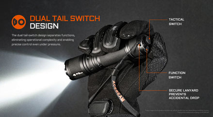 Acebeam P16 2.0 SFT-42R LED Dual Tail Switch Rechargeable Tactical Flashlight with Three Modes -3,000 Lumens
