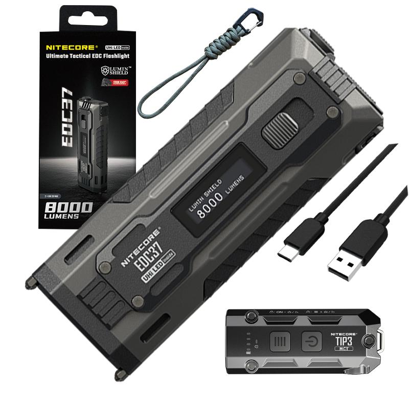 Nitecore EDC37 Ultimate Tactical EDC Flashlight: Double the Power – 8,000 Lumens x 8000mAh w/ TIP3 Multi Color Temperature Keychain Black