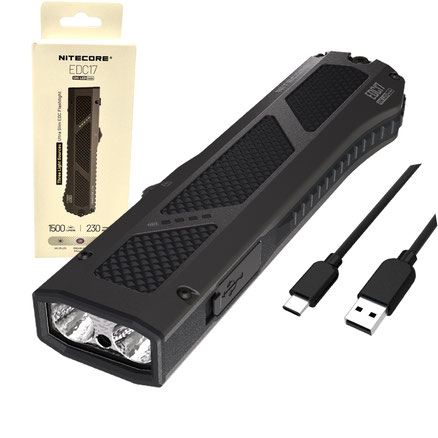 Nitecore EDC17 Rechargeable 3-in-1 Flashlight -1500 Lumen White LED, 365nm UV Light and Additional Beam w/ Eco-Sensa USB Charging Cable
