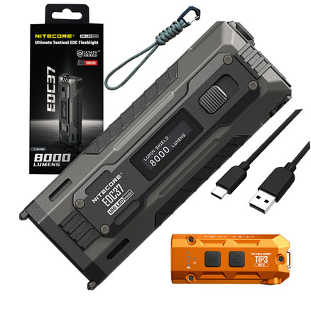 Nitecore EDC37 Ultimate Tactical EDC Flashlight: Double the Power – 8,000 Lumens x 8000mAh w/ TIP3 Multi Color Temperature Keychain Orange