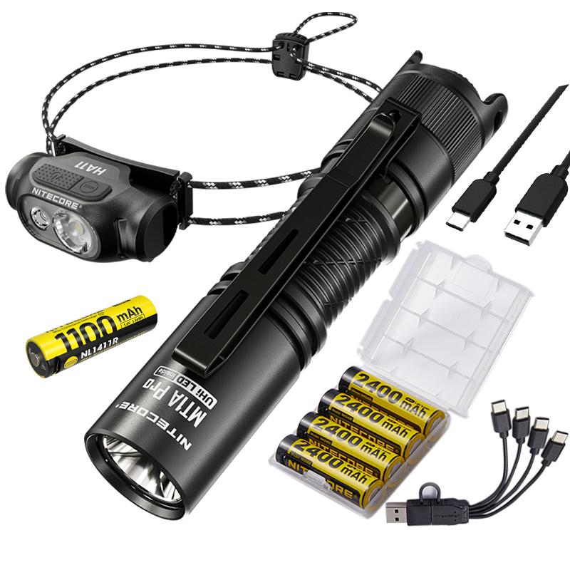 Emergency Survival Lighting Kit – MT1A PRO AA Rechargeable Flashlight, HA11 Lightweight AA Headlamp & USB-C Rechargeable 4x AA Batteries for Power Outages and Camping