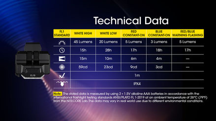 - Peak beam intensity of 4,410cd and max throw of 132 meters