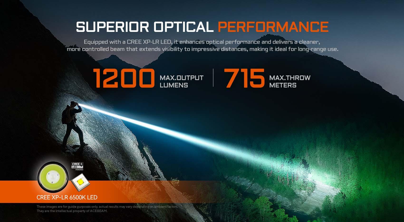 - Reach up to reaching up to 1,200 lumens and 715 meters, ideal for long-range use