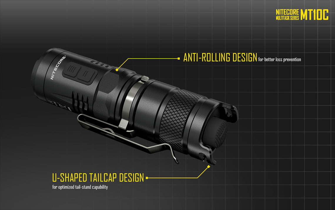 The Nitecore MT10C an everyday carry flashlight that takes no prisoners with its compact design, powerful output and easy to use interface. Utilizing a CREE XM-L2 U2 LED, a cutting edge light emitting diode that produces a stunning 920 Lumens of bright white output. This light is also equipped with an extra red LED that can be used for night vision and for emergency signaling. The MT10C features a combination tail switch and dual side switch interface, making it perfect for tactical action or everyday use. With superior output, construction and controls, this flashlight is a great choice for an everyday carry.