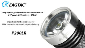 EagleTac P200LR Luminus SST40 LED Rechargeable Flashlight- 2100 Lumens w/ Battery and Eco-Sensa USB-C Charging Cable