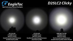 Eagletac upgraded its popular D25LC2 clicky flashlight from XM-L2 LED to XP- L LED which has 5% - 10% increase in brightness. It inherits the small, compact design, easy-to-use UI (user interface), and market leading output/brightness. It is the best EDC light. It comes with the stainless steel clip, stainless steel bezel, all-copper spring, customized rigid holster with self-retention device & flip, water tight lens with AR & Sapphire coatings, partial copper heat sink for C2 and LC2, deep reflector in VLOP finish (Very Light Orange Peel), hidden strobe, etc.