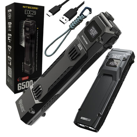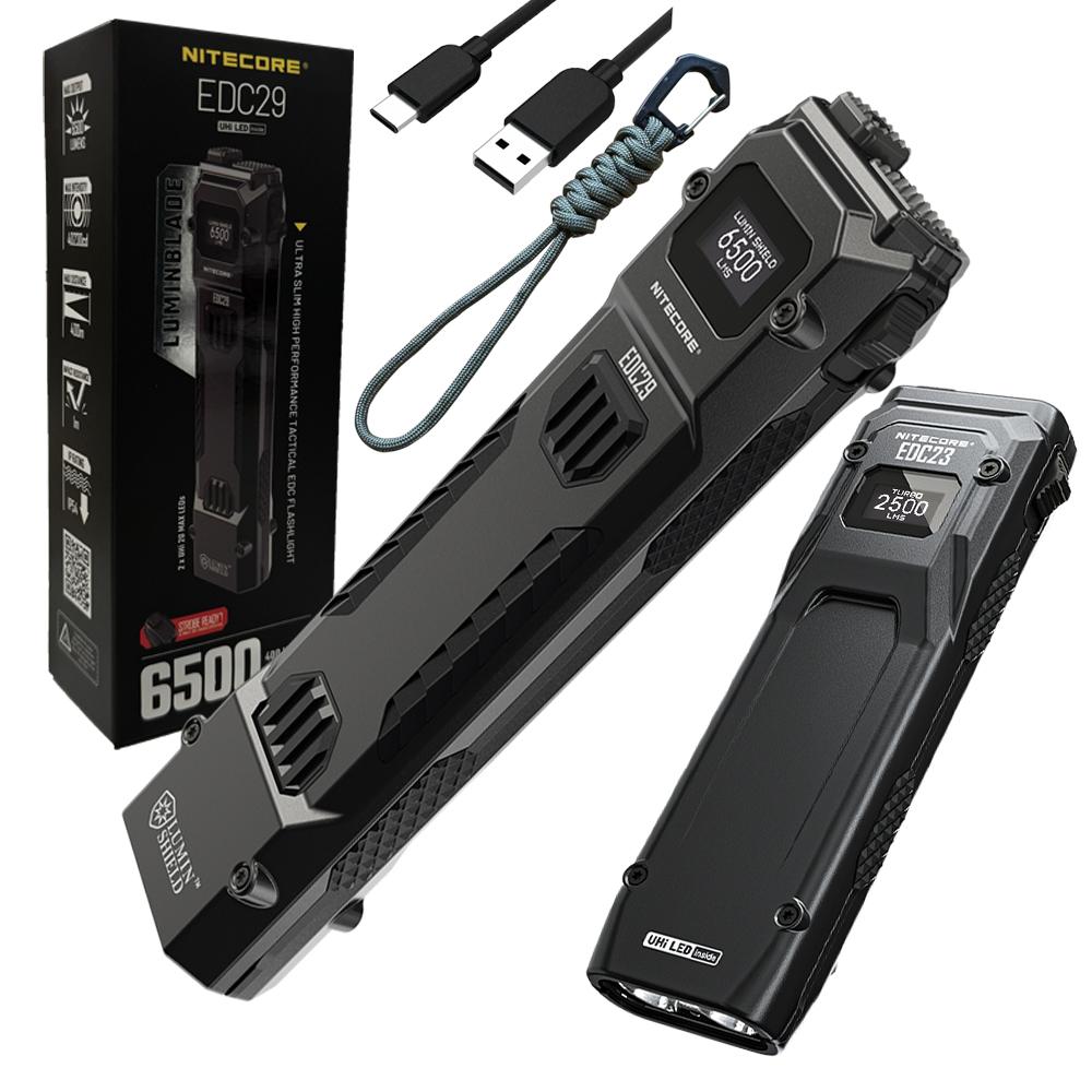 Nitecore EDC29 6,5000 Lumens Rechargeable Flashlight w/ EDC23 Ultra Slim Pocket Tactical 2500 Lumens Flashlight, and ECO-Sensa USB C Charging Cable