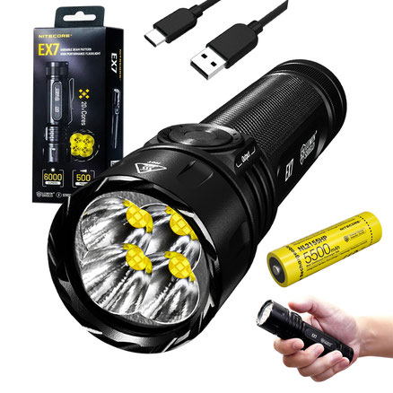 Nitecore EX7 Variable Beam Pattern High Performance LED Rechargeable Flashlight -6000 Lumens w/ NL2155HP Battery and USB C-Charging Cable Included