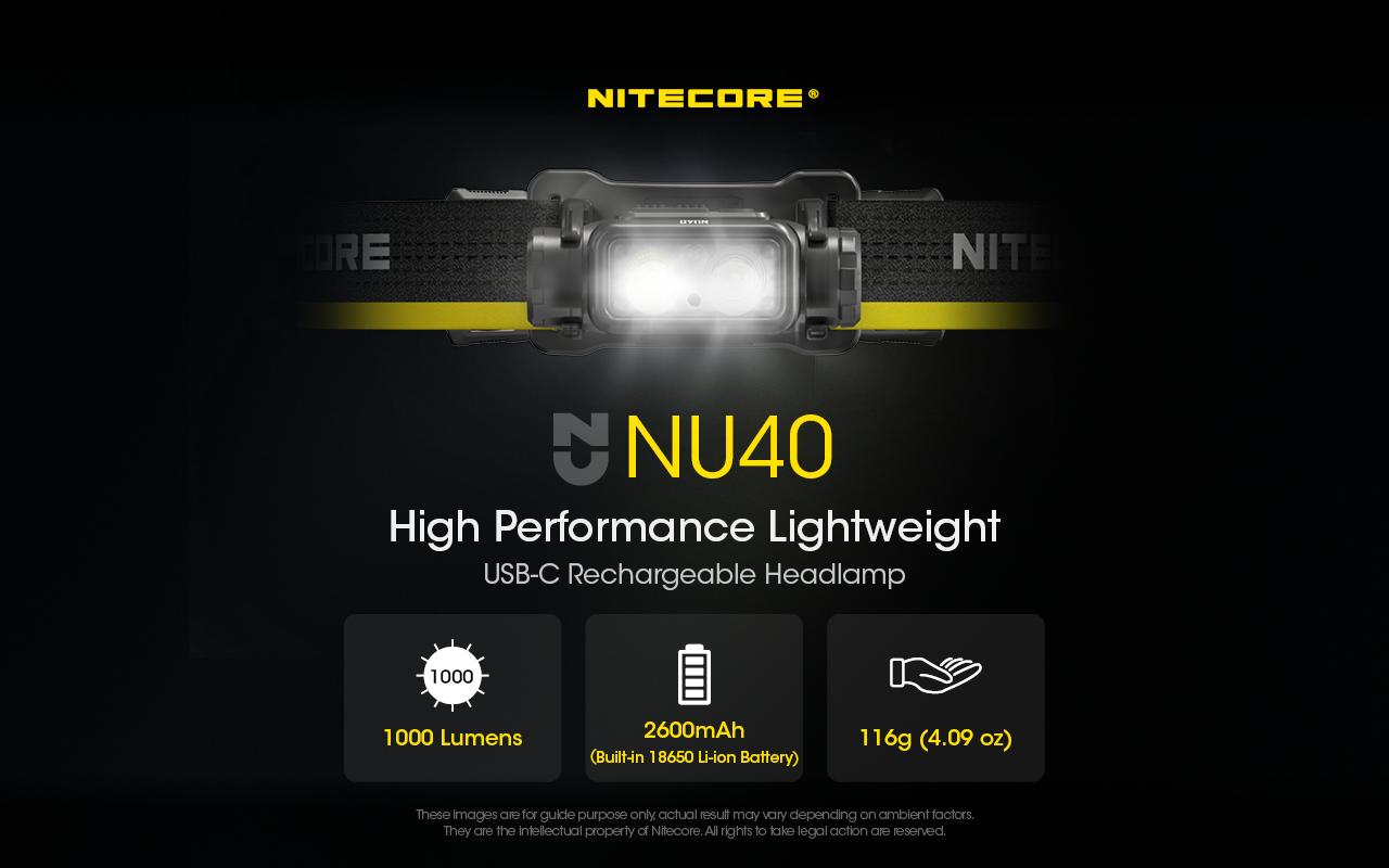 The NITECORE NU40 High Performance Lightweight USB-C Rechargeable Headlamp has an innovative design of the built-in 18650 Li-ion battery that features light weight and high capacity, achieving the perfect combination of lightweight, long runtime and outstanding output.