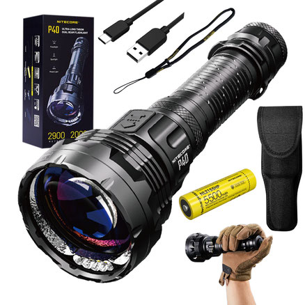 Nitecore P40 Ultra-Long Throw Dual Beam LEP Flashlight 2900 Meter -2000 Lumens w/ USB C Charging Cable